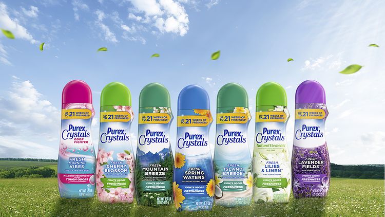 While alluring scents have always been a priority for the brand, Purex® Fresh Mountain Breeze™, Purex® Fresh Lavender Fields™ and Purex® Advanced Oxi with Odor Fighter liquid laundry detergents now offer 45 days of long-lasting freshness2. Purex® Crystals™ Scent Boosters also feature an updated claim of up to 21 weeks of long-lasting freshness out of storage.